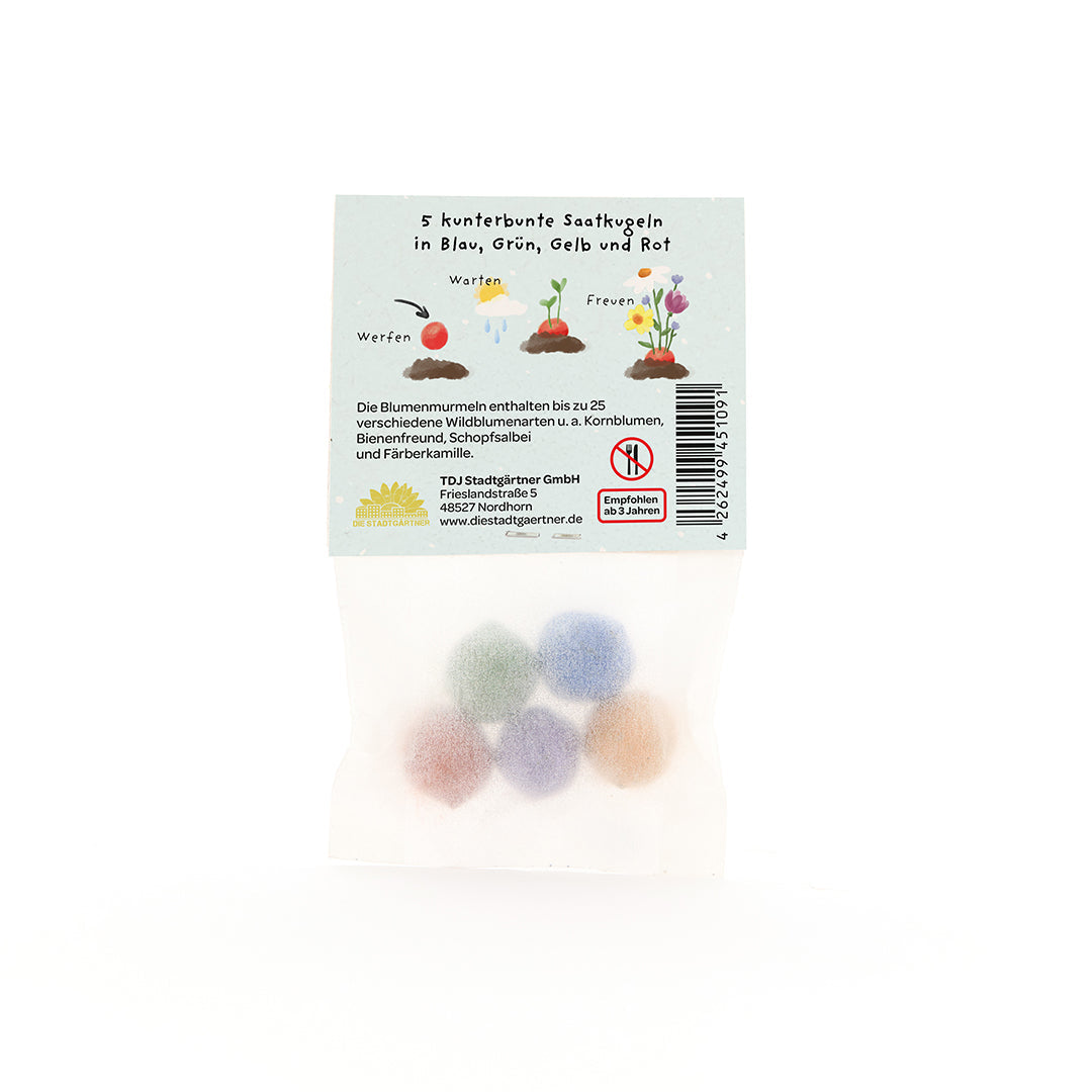 Fröhliches Geschenk zum Aufmuntern: Dieses Set enthält ein liebevoll gestaltetes Tütchen mit 5 bunten Blumenmurmeln. Perfekt als kleine Geste, um Freude zu verbreiten.