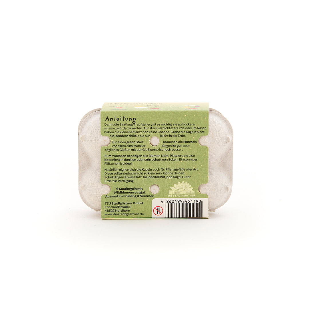 Wachsendes Geschenk zum Geburtstag: Die 6 bunten Blumenmurmeln im Mini-Eierkarton enthalten Wildblumen-Saatgut und einen liebevollen Geburtstagsgruß – eine originelle Geschenkidee zum Geburtstag.
