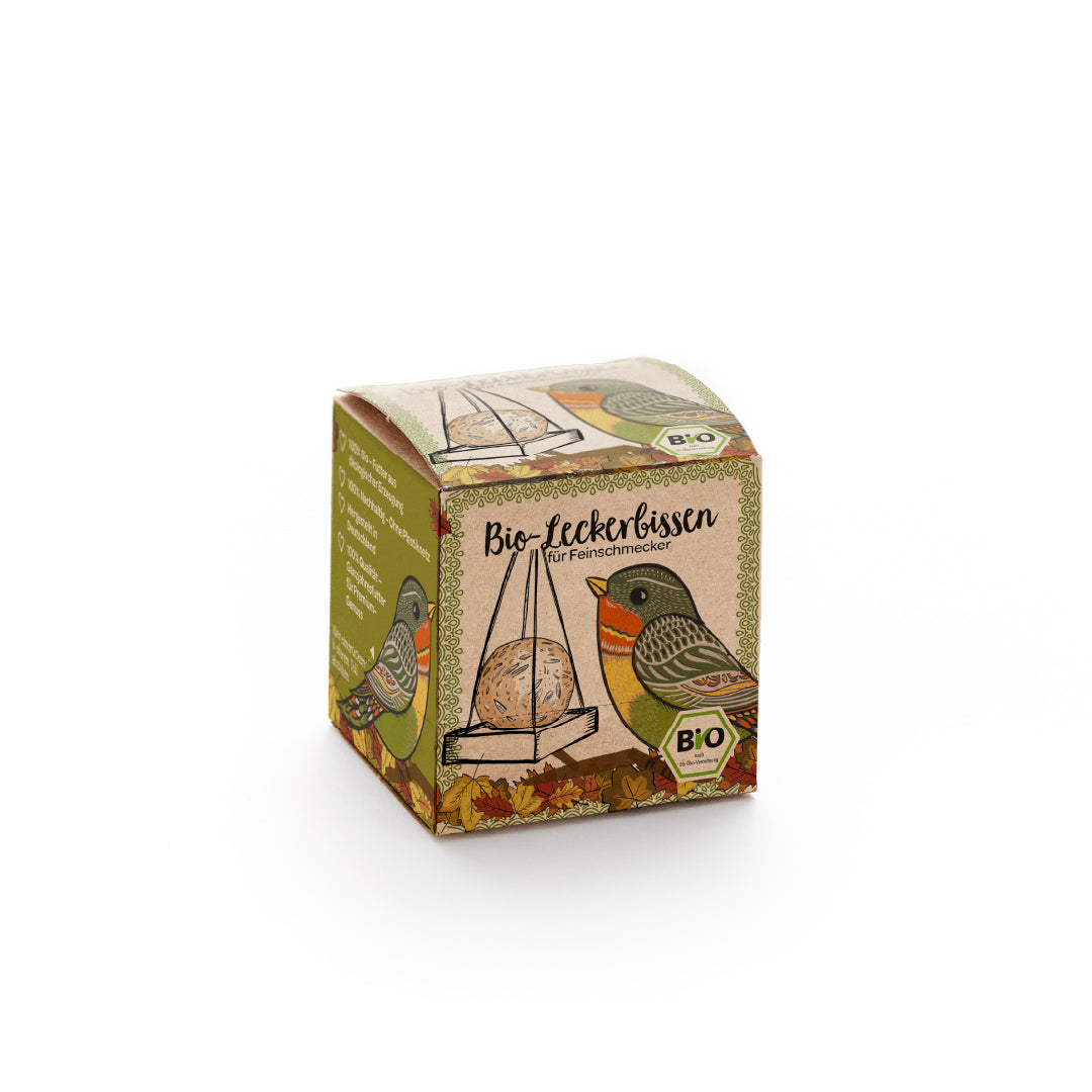 Dieser BIO Futterknödel für Wildvögel ist eine wahre Delikatesse für deine gefiederten Freunde. Mit Getreide*, Saaten*, Öle, Fette*, Nüsse* und Mineralstoffe für eine ganzjährige Fütterung. (*BIO)