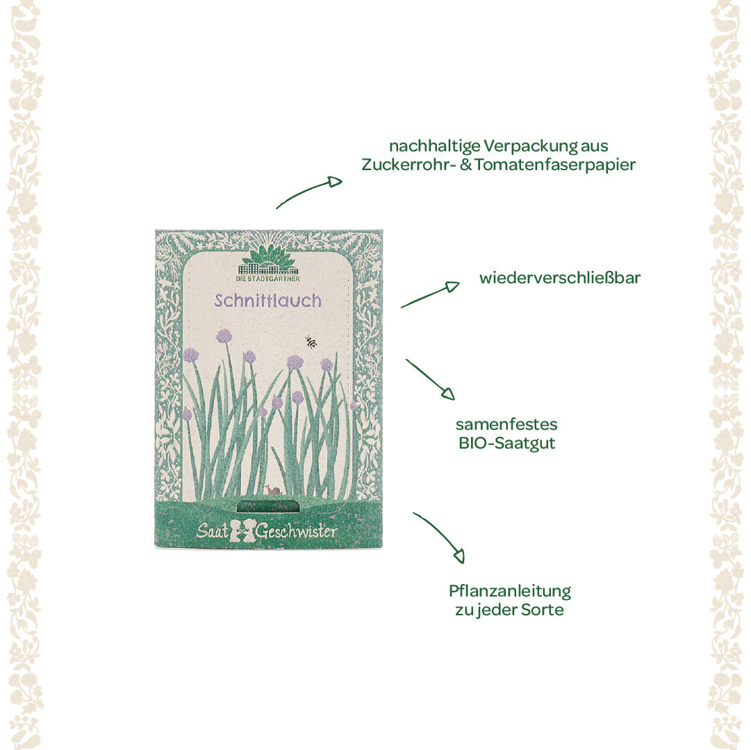 Tolle Geschenkidee für Hobbyköche: Das Schnittlauch-Saatgut ist eine originelle Aufmerksamkeit für Gartenliebhaber und Freunde von frischen Kräutern. Ob zum Geburtstag, zu Weihnachten oder als Mitbringsel – Schnittlauch bringt Geschmack und Freude ins Zuhause.
