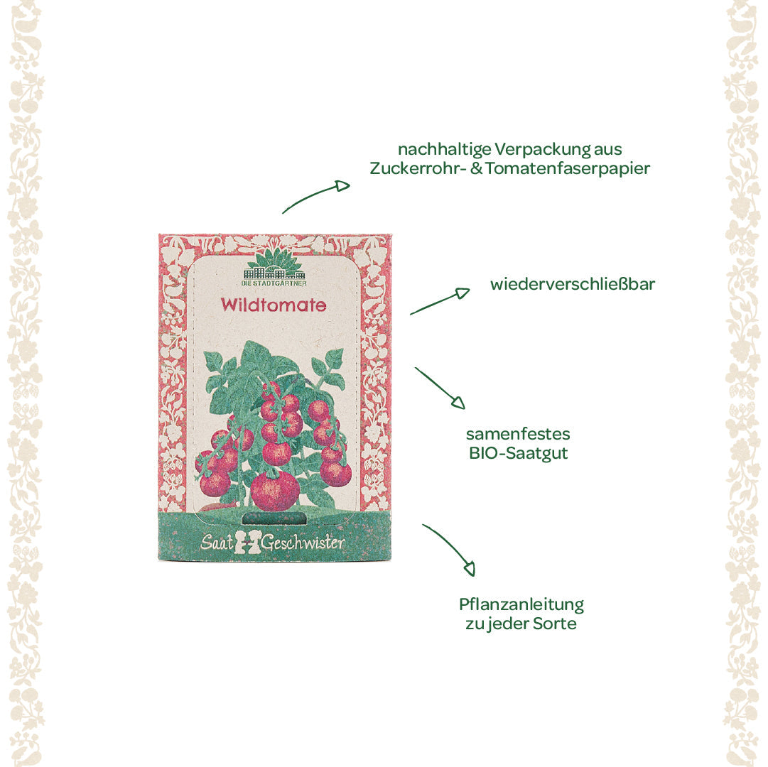 Tolles Geschenk für Tomatenfans: Ob zu Weihnachten, als Geburtstagsgeschenk, zum Nikolaus oder als Wichtelgeschenk – das Saatgut Wildtomate ist eine originelle und nachhaltige Aufmerksamkeit für Freunde, Bekannte, Mama, Papa, Oma, Opa und Gartenfreunde.