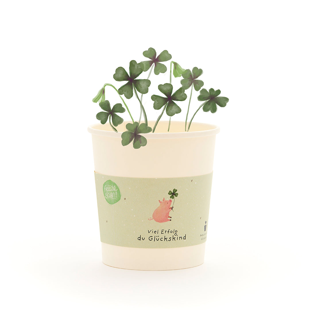 Verschenke einen Hauch von Glück: Dieses liebevoll gestaltete Anzuchtset für Glücksklee sagt mehr als tausend Worte: Es schenkt Mut, Glück und ein Lächeln – mit einem Becher, der zeigt, wie viel man jemandem wünscht. Der Spruch „Viel Erfolg, du Glückskind“ macht daraus ein kleines, aber bedeutungsvolles Geschenk.