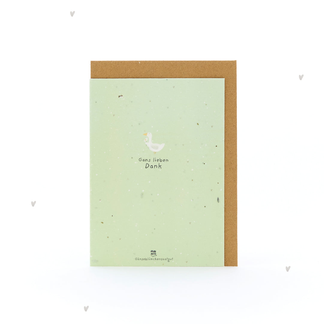 Dankbarkeit, die weiterblüht: Aus dem Saatpapier sprießen schon bald zarte Gänseblümchen - als liebevolles Dankeschön, das nicht nur von Herzen kommt, sondern auch zum Schmunzeln einlädt. Denn manchmal sagt ein Gänseblümchen mehr als tausend Worte - und ein gans lieber Gruß bleibt besonders lange in Erinnerung.
