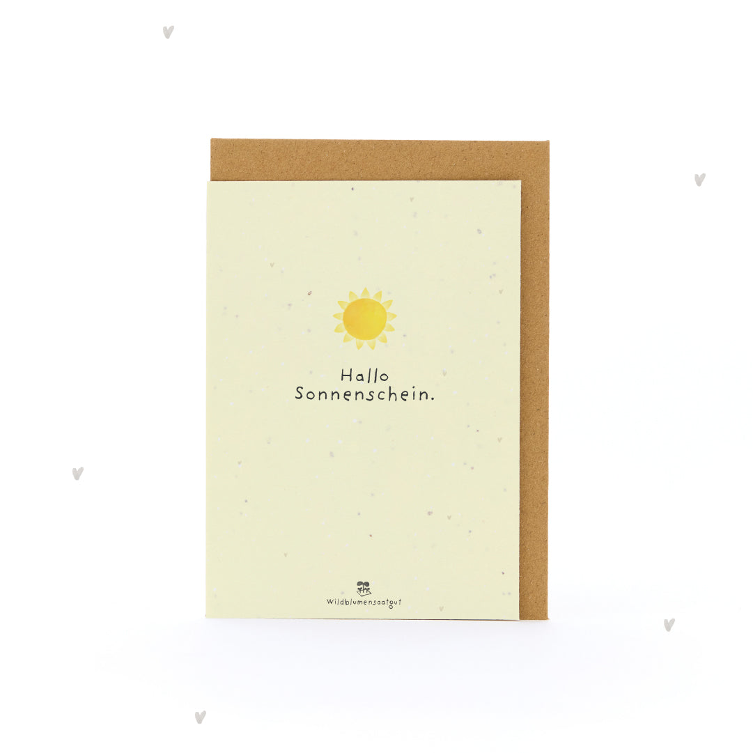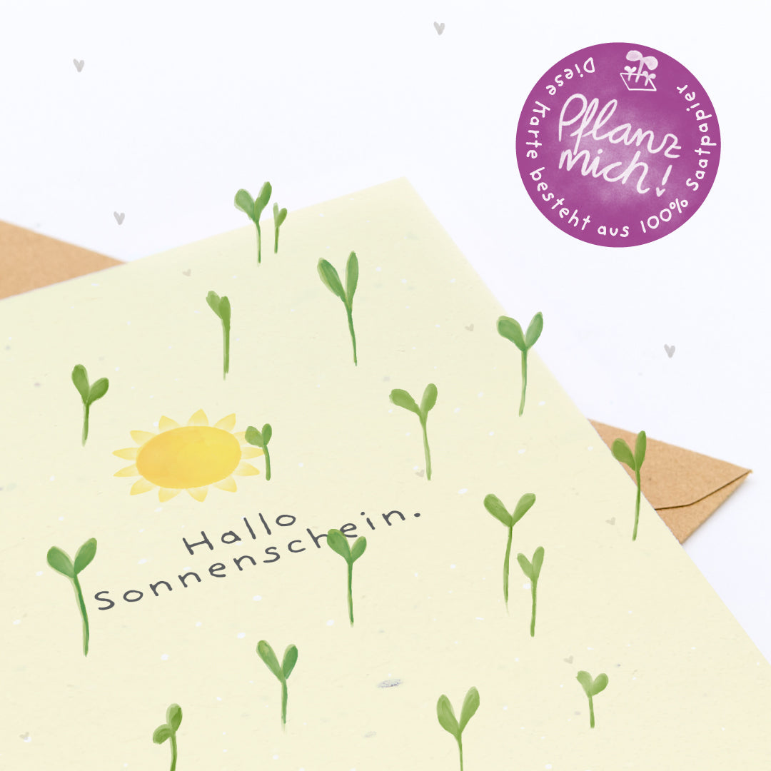 Nachhaltig & plastikfrei: Die Karte ist aus kompostierbarem Saatpapier gefertigt, der Umschlag aus Kraftpapier, die Hülle biologisch abbaubar - ein herzlicher Gruß, der mit der Sonne um die Wette strahlt.