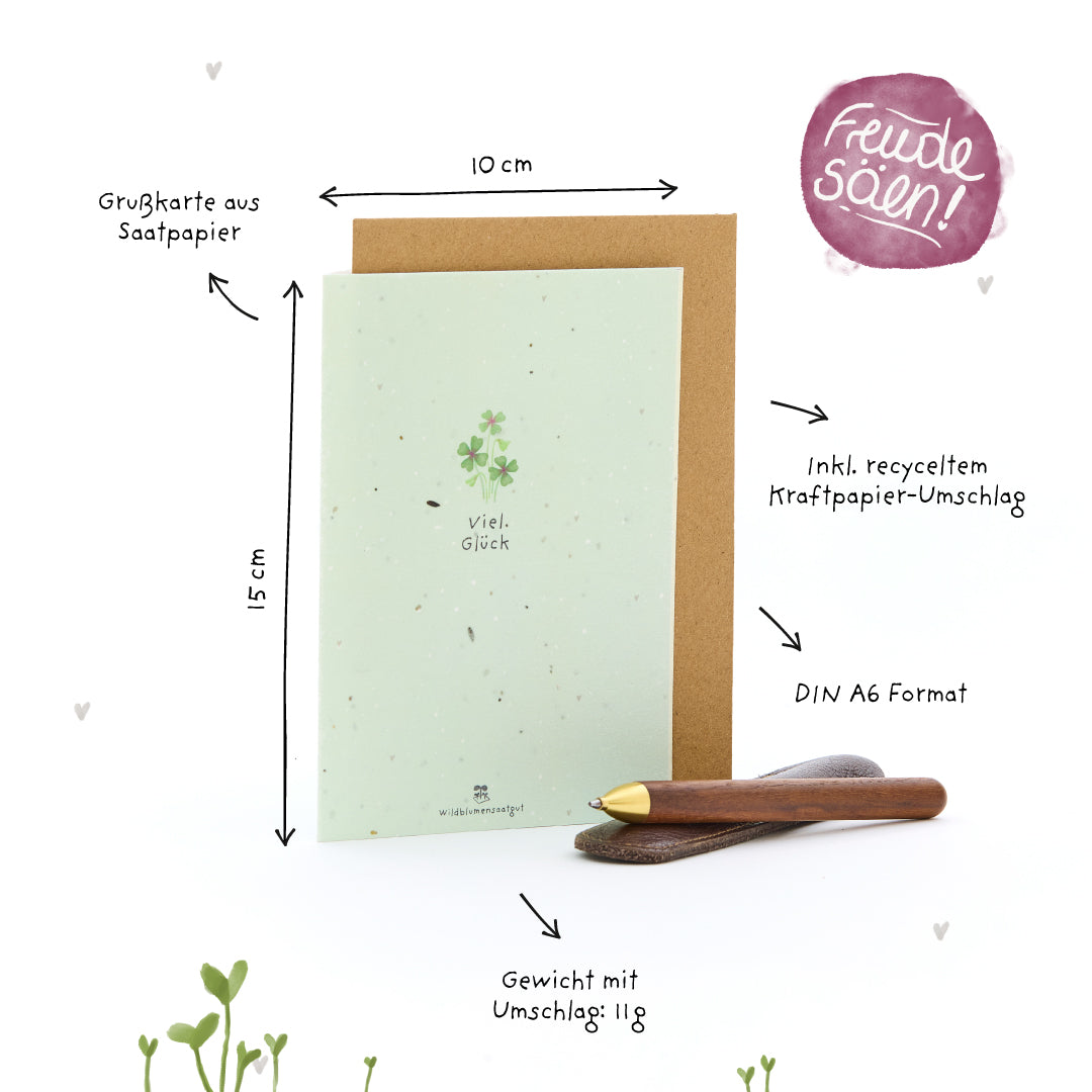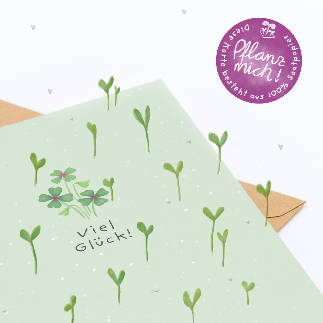 Glück, das wächst: Mit dieser liebevoll gestaltete Viel Glück Karte schenkst du nicht nur liebe Worte, sondern auch ein Stück Natur. Perfekt, um bei einer Prüfung, Umzug, Abi oder einem neuen Job von Herzen "Alles Gute" und "Viel Erfolg" zu wünschen.