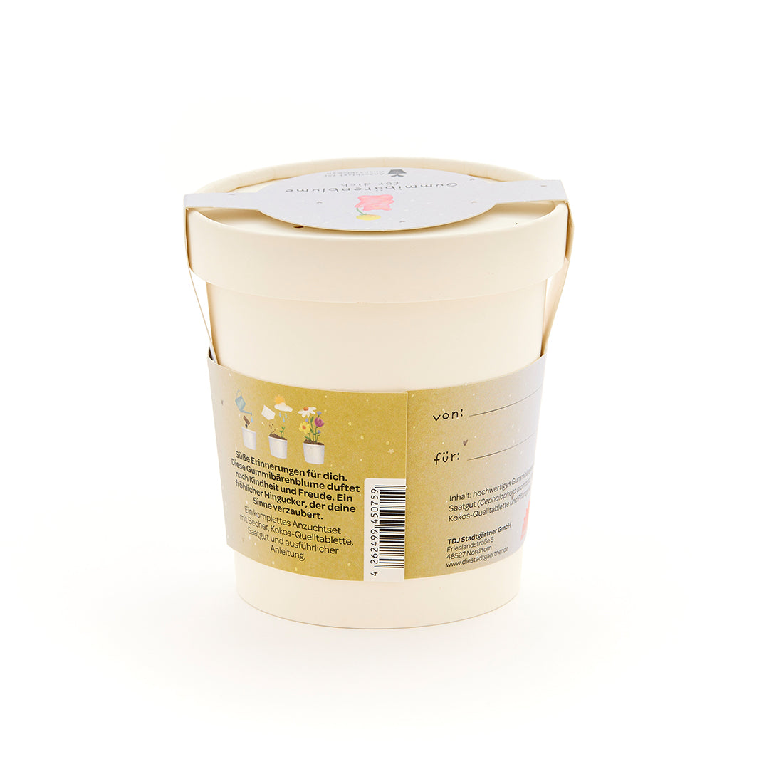 Ein süßer Blumengruß mit Spaßfaktor: Dieses charmante Anzuchtset zaubert nicht nur ein Lächeln, sondern auch nach Gummibärchen duftende Blüten auf die Fensterbank. Der liebevoll gestaltete Becher mit dem Spruch "Gummibärenblume für dich" ist ein humorvolles Geschenk, das Kindheitserinnerungen weckt und Freude wachsen lässt.
