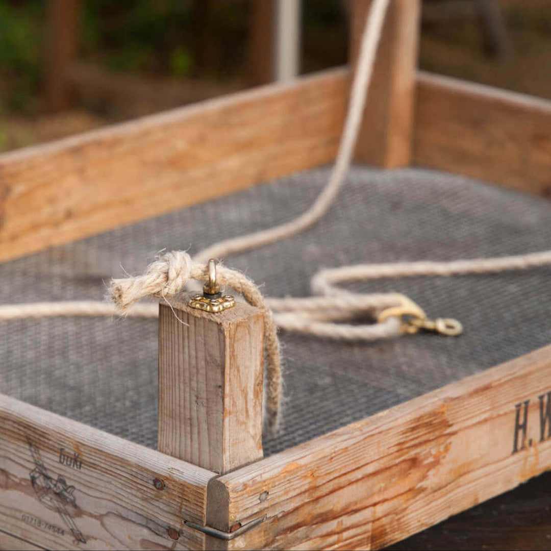 Eine hübsche und dekorative Zweckentfremdung hat dieses Zwiebelsieb im Vintage-Look erfahren. Die Steige, die früher zur Aufbewahrung von Obst, Gemüse und Zwiebeln gedient hat, findet nun als Gartenlicht oder Hängeampel neue Verwendung. Der Fantasie sind dabei keine Grenzen gesetzt. Jedes Zwiebelsieb hat die Größe 75 x 51 x 9 cm und wiegt 3,2 Kilogramm. Beschläge und Seile sind montiert, die Windlichter sind nicht im Lieferumfang enthalten.