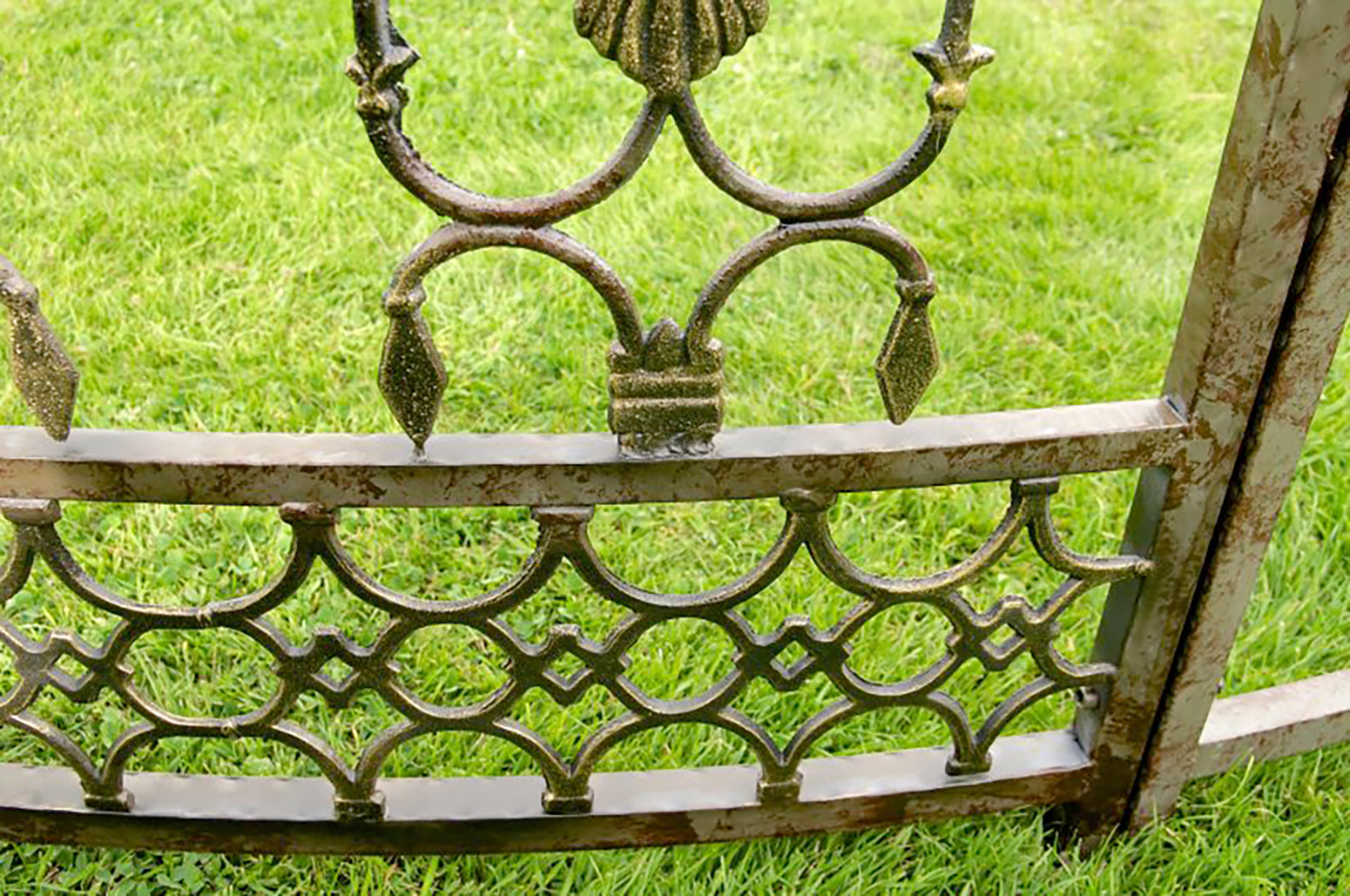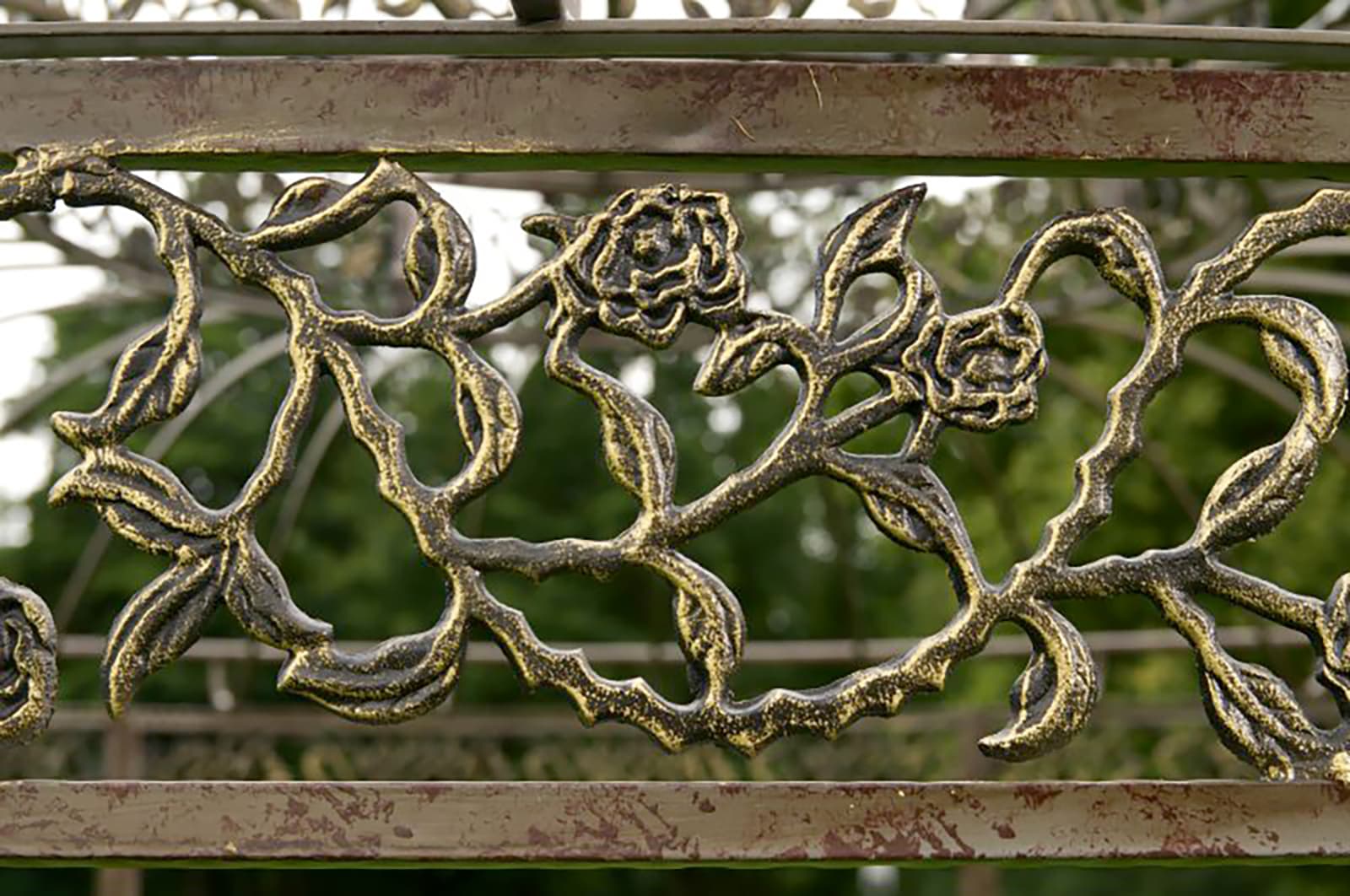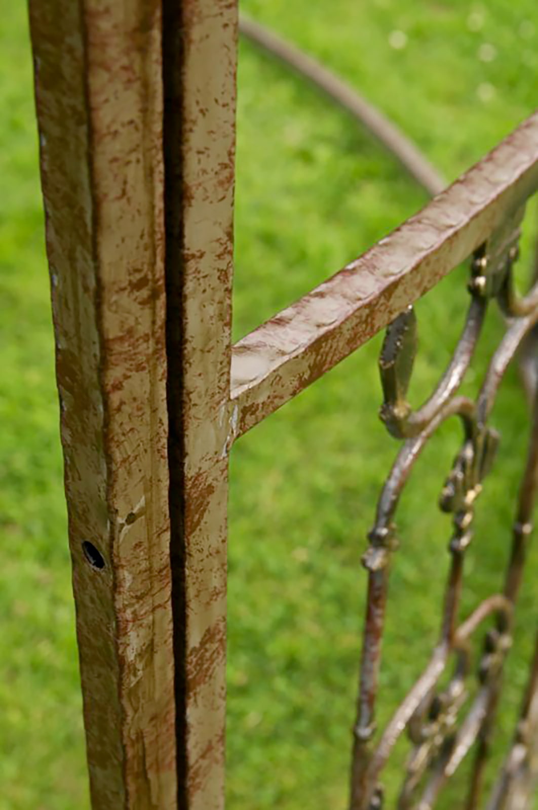 Die Beschläge und Verschraubungen sind aus stabilem Metall und wie Sie sehen, wurde hier die Materialauswahl in allen Bereichen ganz sorgfältig getroffen. Das wunderschön und in aufwendiger Handarbeit verzierte Gestell aus Eisen wurde mit einer antik nachempfundenen Rost-Patina veredelt! Exklusiver könnte ein Pavillon kaum gefertigt sein. Lange Zeit werden Sie sich an diesem Prachtstück erfreuen können und es wird Sie jedes Mal mit Stolz erfüllen, wenn Sie auf dieses Schmuckstück angesprochen werden. Sehnsüchtige Blicke Ihrer Besucher bleiben hier nicht aus und Sie können versichert sein, dass Sie von jedermann um Ihren Lieblingsplatz im Garten beneidet werden.