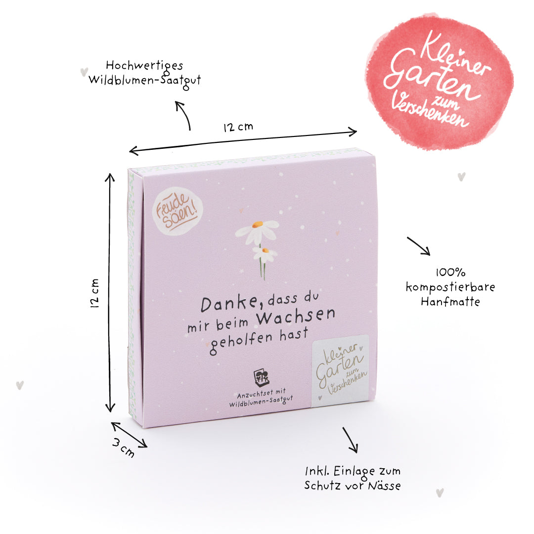 Ein Geschenk voller Wertschätzung: Ob als Abschiedsgeschenk von der Kita oder Grundschule, als emotionale Aufmerksamkeit für Mama oder einfach als kleine Wertschätzung zwischendurch für Trainer & Co. - mit dem niedlichen Pflanzkästchen sagst du wortwörtlich "Danke, dass du mir beim Wachsen geholfen hast". Ein Geschenk voller Symbolcharakter für Lehrerin, Eltern, Tagesmutter oder Erzieherin, das garantiert in Erinnerung bleiben wird.