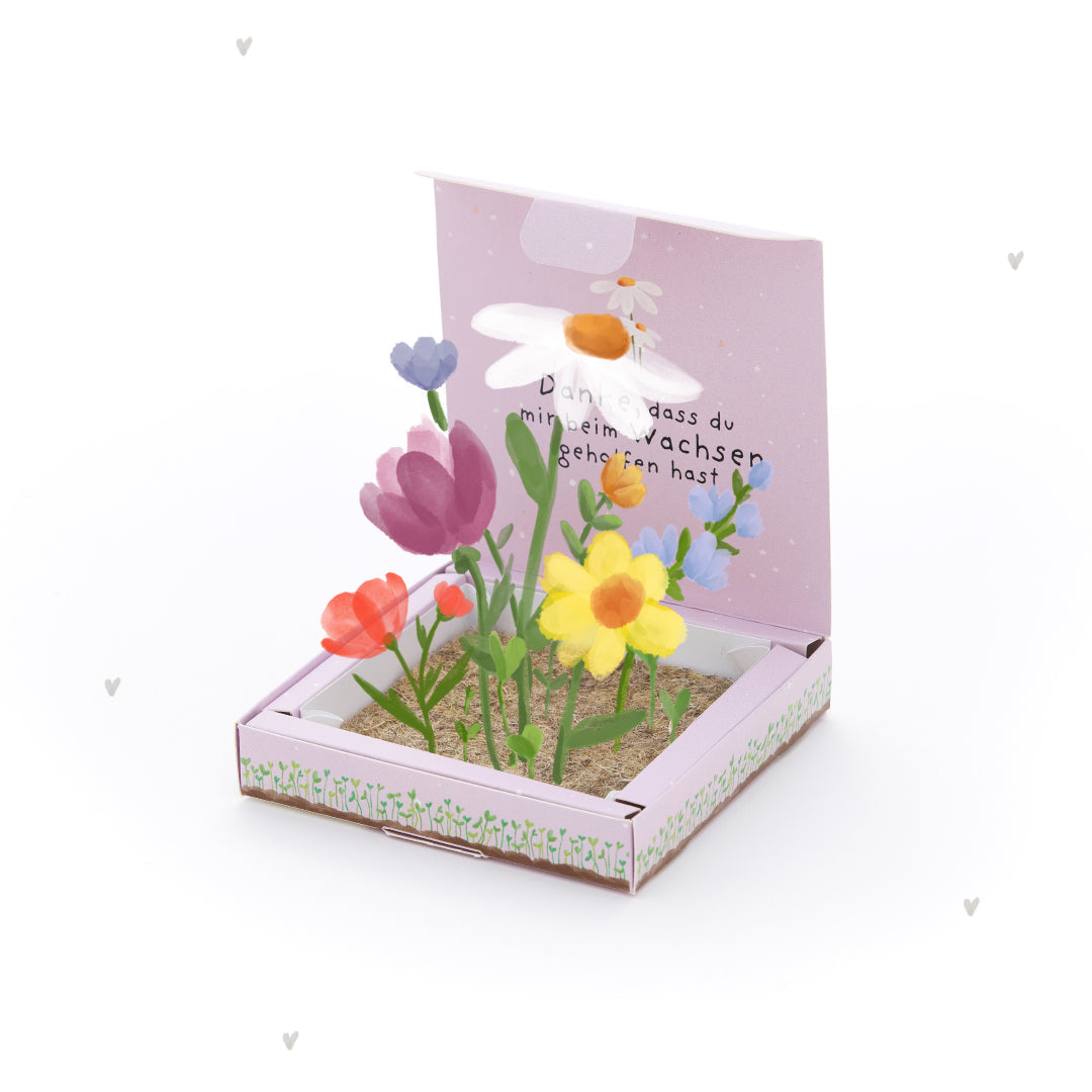 Ein Geschenk, das weiterblüht: Wenn die Pflänzchen größer werden, kannst du sie samt Matte einfach ins Beet oder einen größeren Topf umsiedeln - für langanhaltende Freude und eine kleine grüne Erinnerung.
