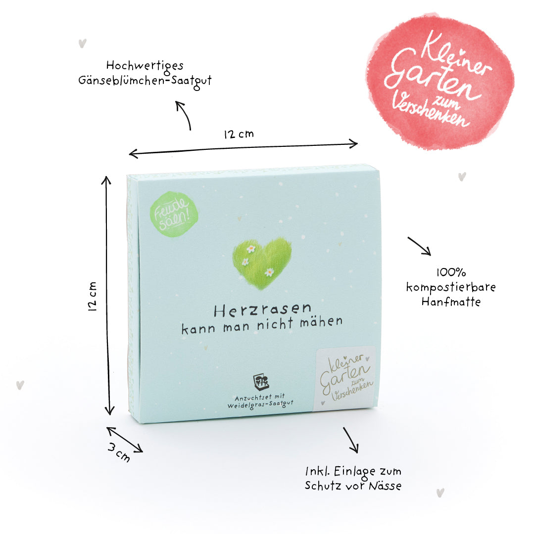 Herzrasen kann man nicht mähen: Manche Gefühle brauchen einfach Platz - dieses liebevoll gestaltete Pflanzkästchen ist eine kleine Erinnerung daran. Ob bei frisch entflammter Liebe, stiller Schwärmerei oder echtem Liebeskummer: Es ist okay, wenn das Herz schneller schlägt.