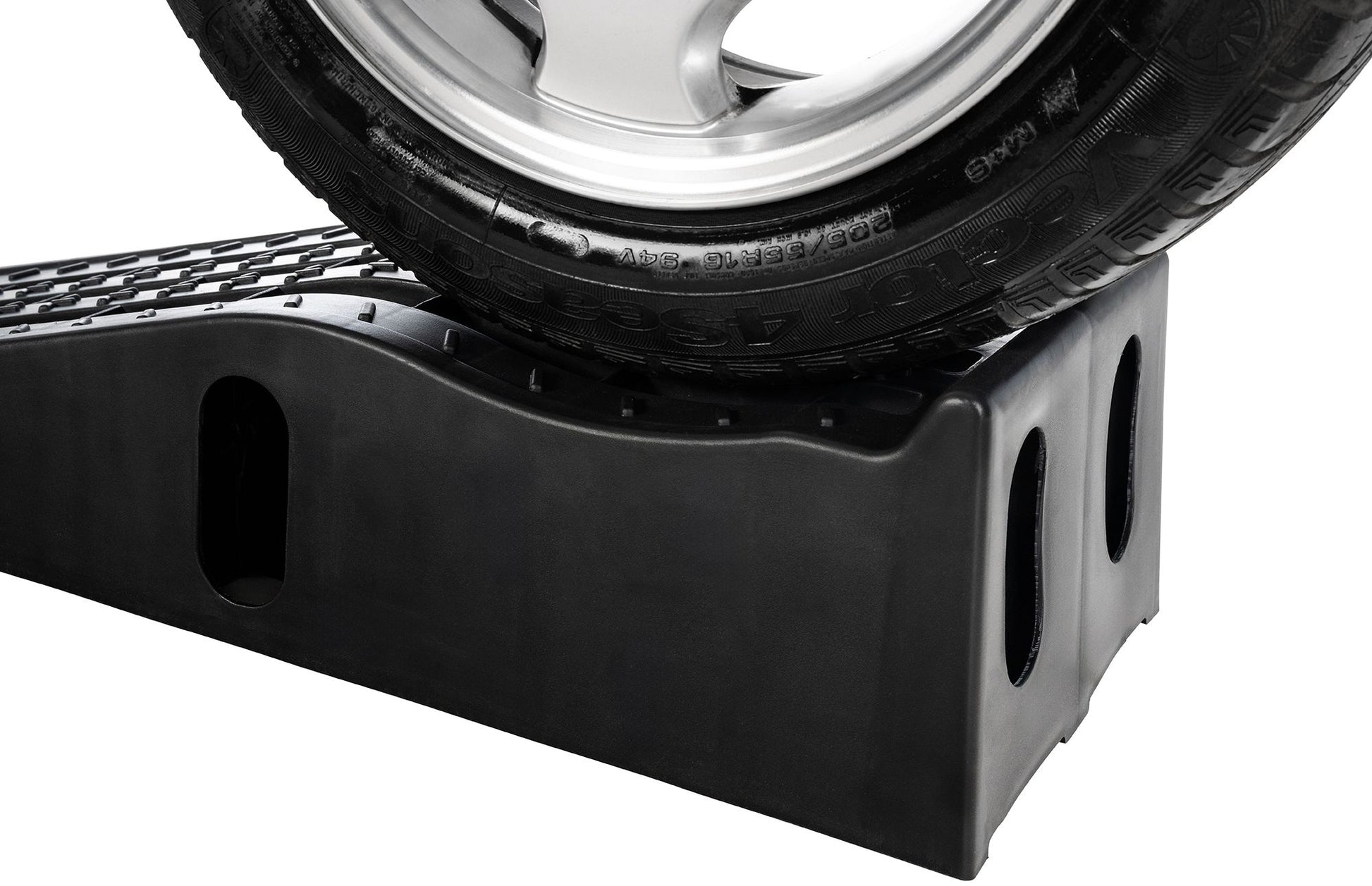 Die Rampen sind leicht und stapelbar gestaltet, was ihre Handhabung und Lagerung vereinfacht. Sie lassen sich mühelos transportieren und können platzsparend in der Garage oder im Fahrzeug verstaut werden.