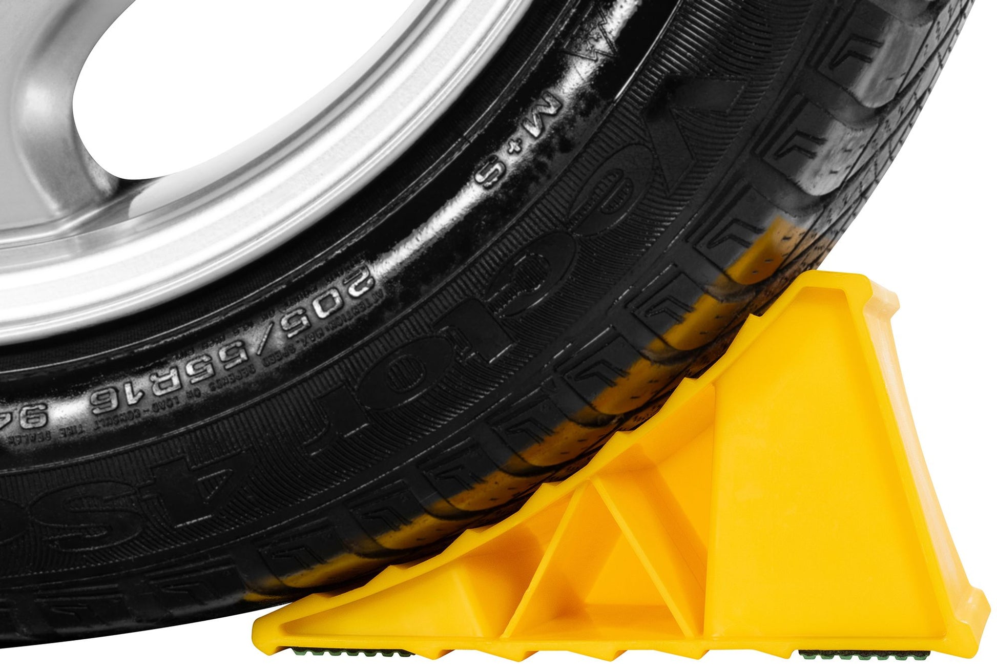Set 2 erweitert das Angebot um zwei gelbe Unterlegkeile, die das Wegrollen des Fahrzeugs verhindern und somit zusätzliche Sicherheit während der Wartung bieten.