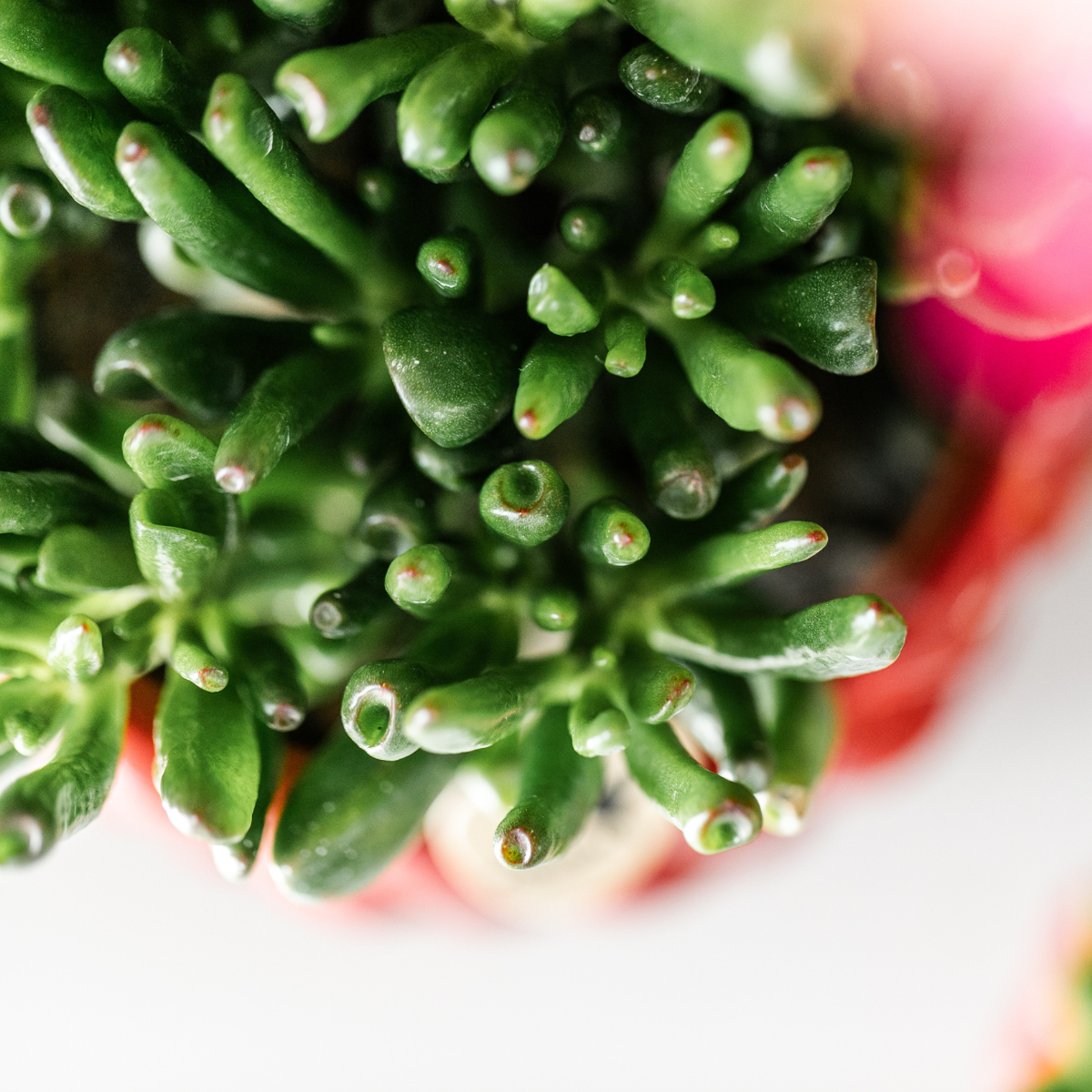 Sukkulenten speichern Wasser in ihren dicken Blättern und sind daher besonders genügsam. Sie brauchen nur wenig Aufmerksamkeit und eignen sich hervorragend für Menschen mit wenig Zeit oder Erfahrung in der Pflanzenpflege. Einfach hell stellen (aber nicht in die pralle Sonne), sparsam gießen – und sich über frisches Grün freuen!