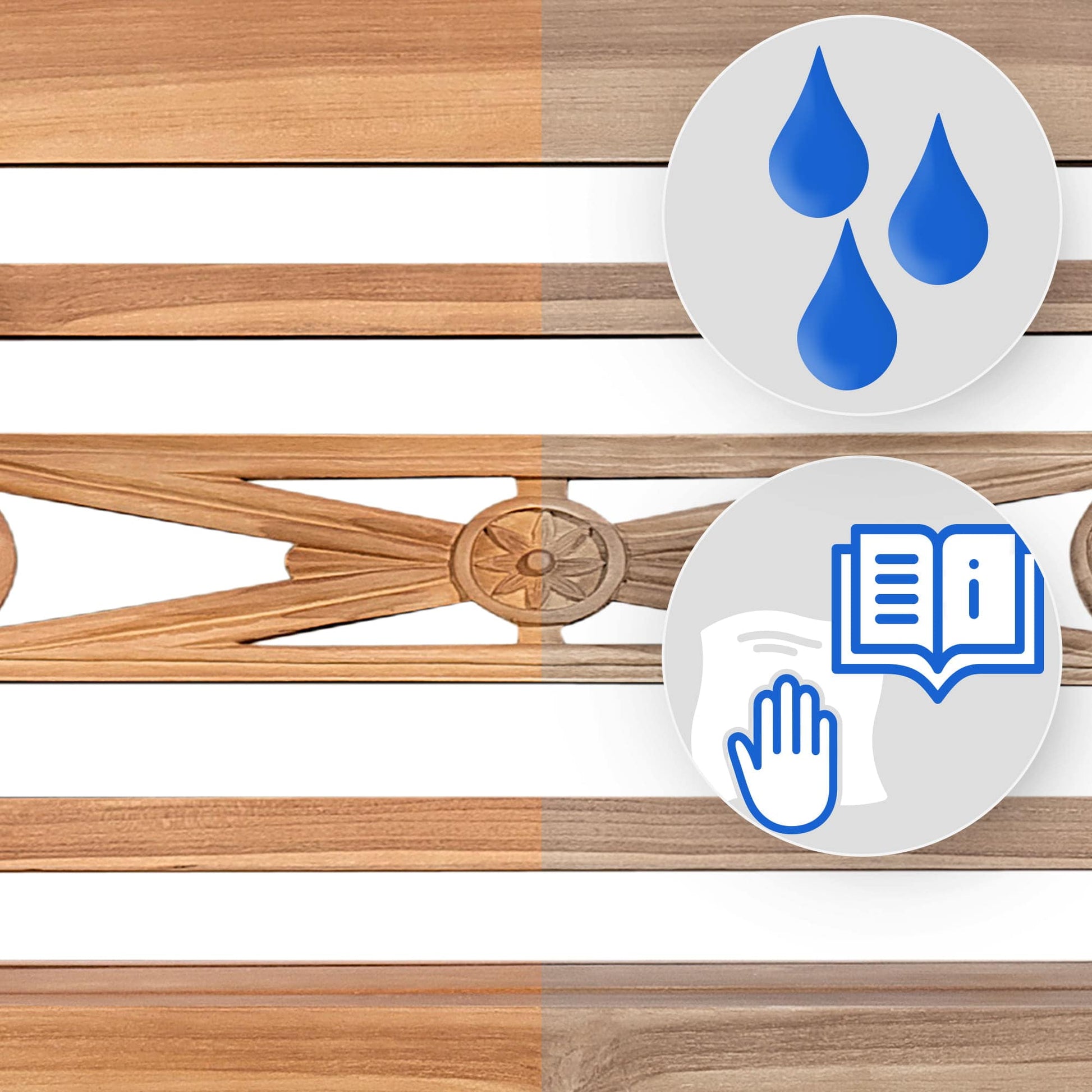 Das Edelholz Teak ist ein äußerst hochwertiges und strapazierfähiges Material. Ihre Teak-Gartenmöbel können daher sogar ganzjährig draußen stehen. Zum dauerhaften Erhalt des Farbtons sind geeignete Pflege-Öle für Teakholz zu empfehlen, die Sie bei Bedarf im Fachhandel erhalten.