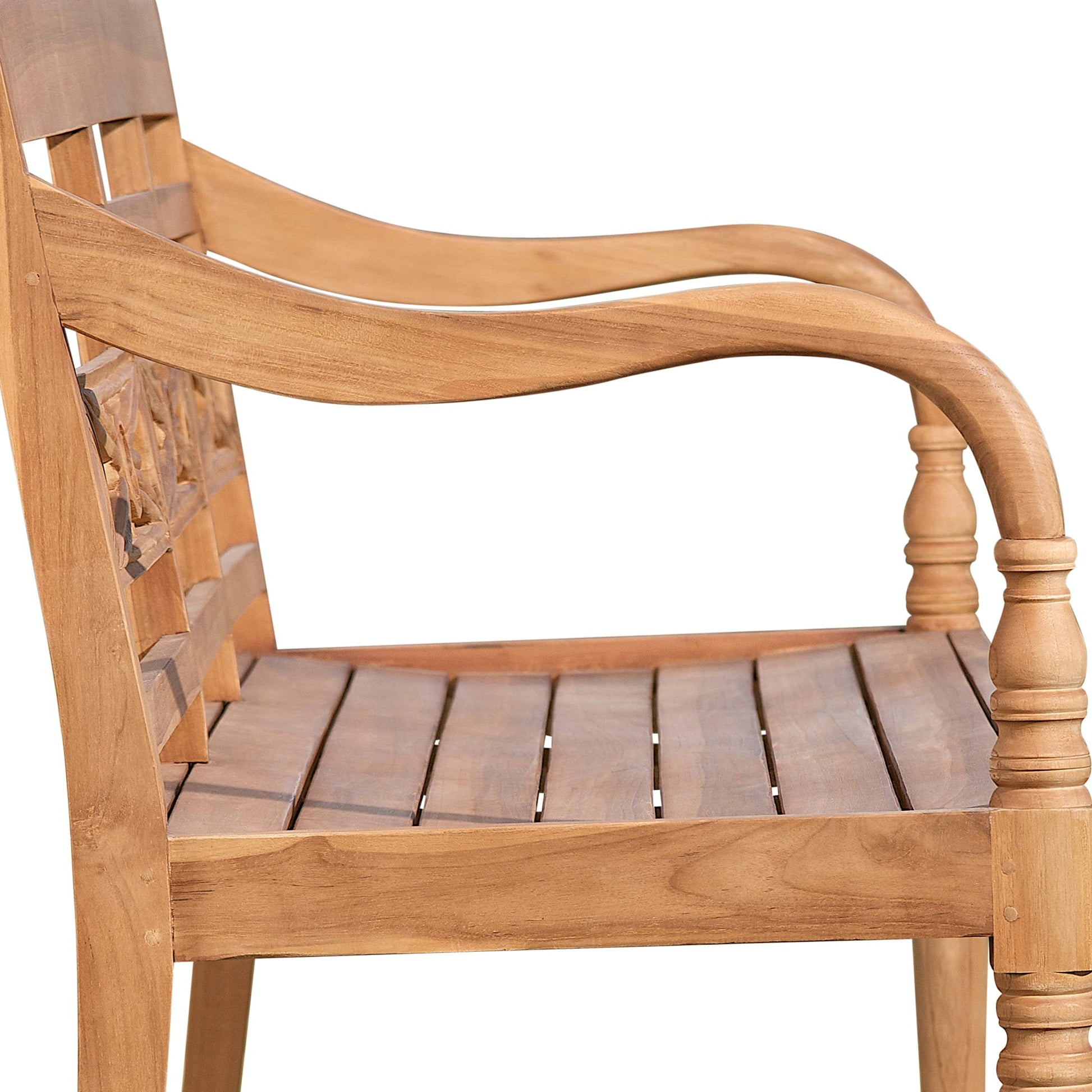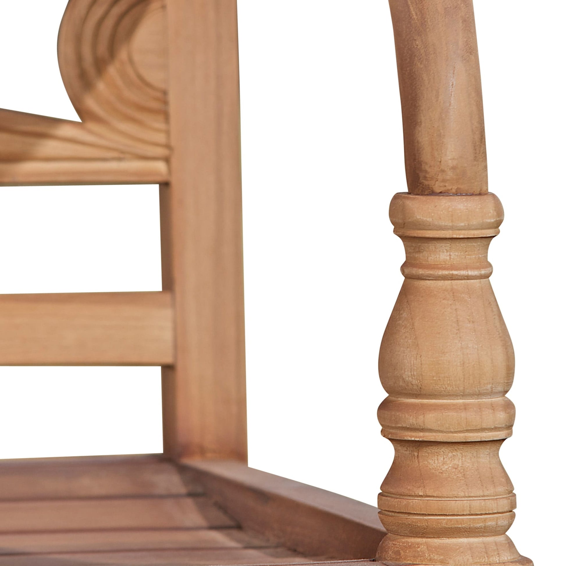 Diese naturbelassene Gartenbank wurde aus massivem Teakholz hergestellt. Maryland V2 ist besonders witterungsbeständig und hält ganzjährig Wind und Wetter stand. Mit ihren liebevollen Verzierungen und den runden Armlehnen, sowie Vorderbeine passt diese Gartenbank überall perfekt ins Bild und lässt sich auch mit vorhandenem Terrassen- oder Gartenmobiliar harmonisch kombinieren. Die angenehm geneigte Rückenlehne und die geschwungenen Armlehnen verleihen der Teakbank ergonomischen Sitzkomfort.